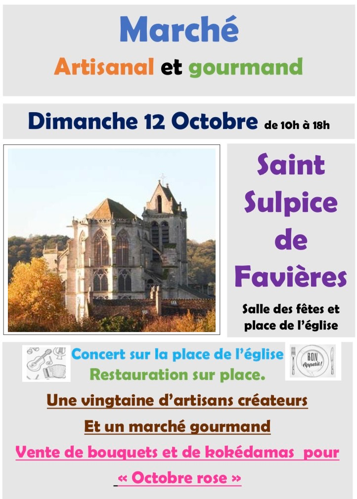 - Dimanche 12 octobre 2025 – Marché artisanal et gourmand de Saint Sulpice de Favières.Nos adhérents animent un stand de vente de bouquets et… Lire la suite : Dimanche 12 octobre 2025 – Marché artisanal et gourmand de Saint Sulpice de Favières.
